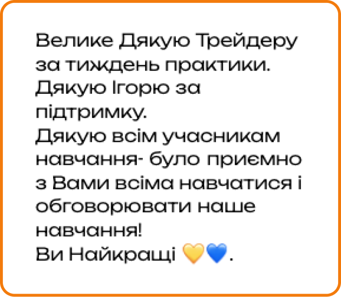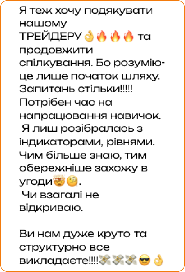 На курсі присутній куратор – практикуючий трейдер, який вже провів 3 потоки навчання.